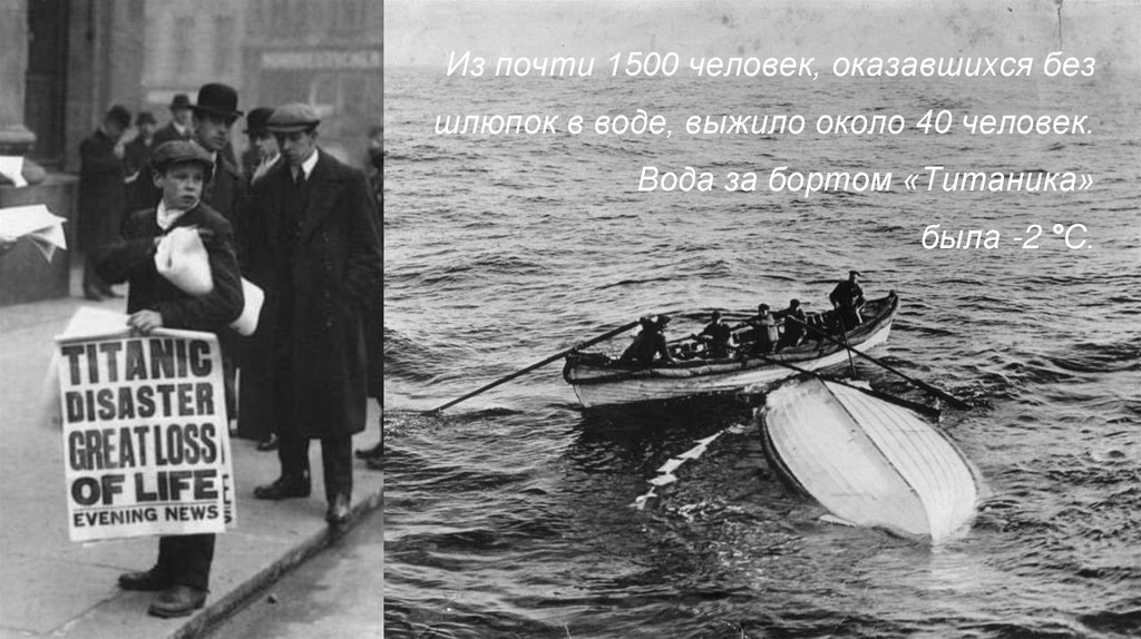 Из почти 1500 человек, оказавшихся безшлюпок в воде, выжило около 40 человек.