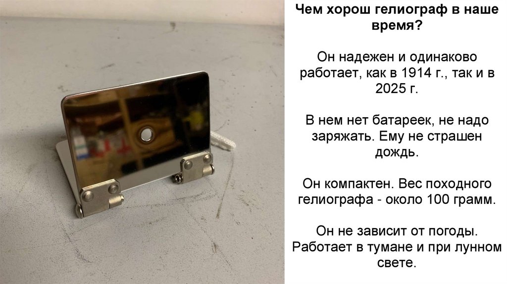 Работа с гелиографом проста.Взять прибор в руки.