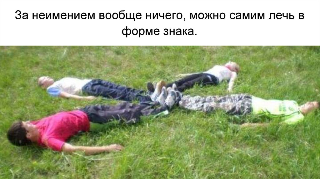 За неимением вообще ничего, можно самим лечь вформе знака.