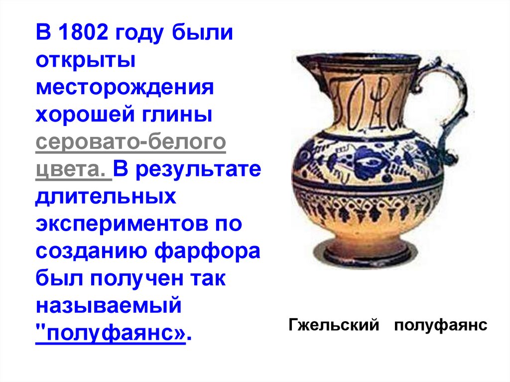 • Вслед за майоликойпоявилась белоголубая гжель.