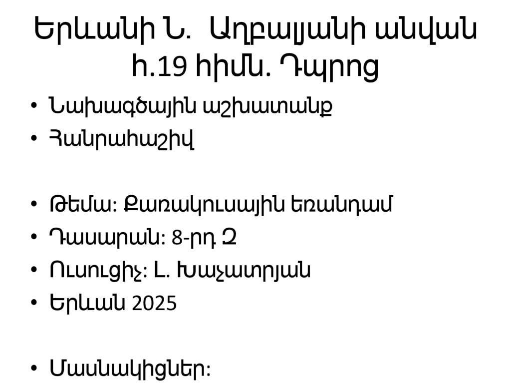 • Ուսուցիչ: Լ. Խաչատրյան