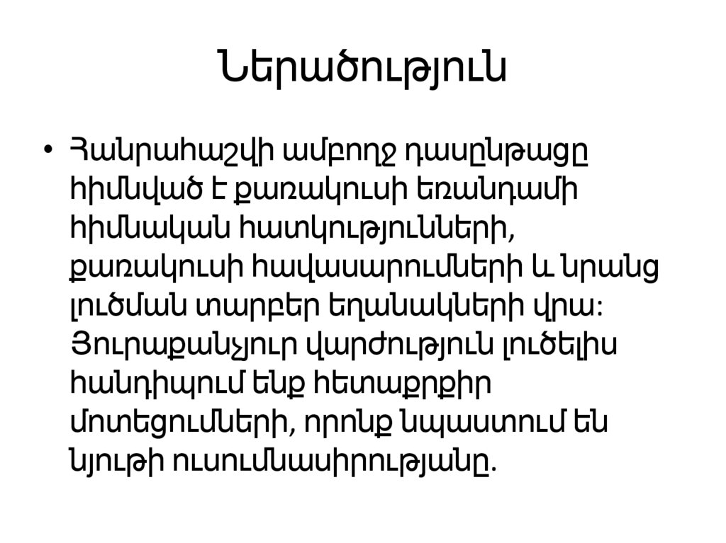Ներածություն• Հանրահաշվի ամբողջ դասընթացը