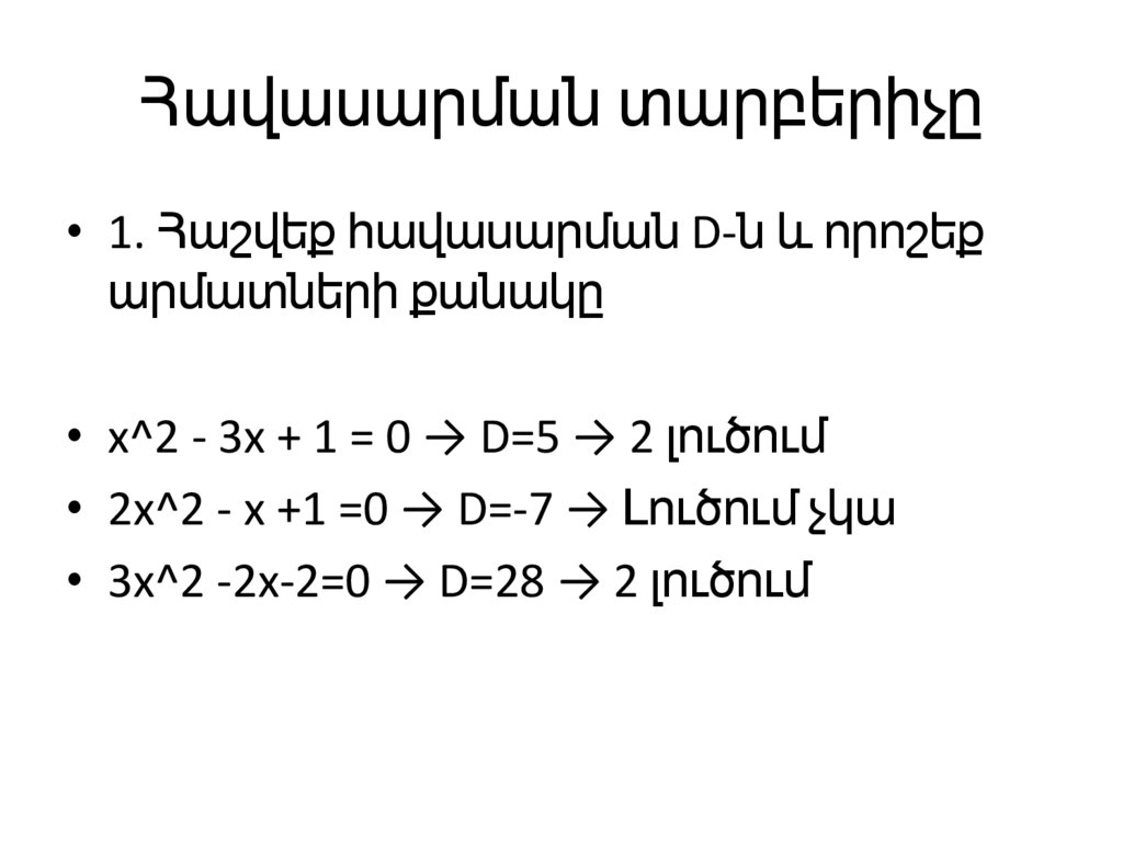 Հավասարման տարբերիչը• 1. Հաշվեք հավասարման D-ն և որոշեք