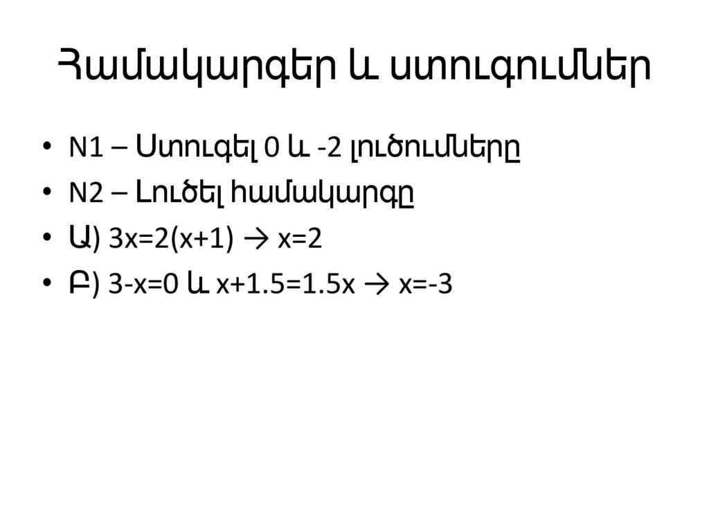 Համակարգեր և ստուգումներ• N1 – Ստուգել 0 և -2 լուծումները
