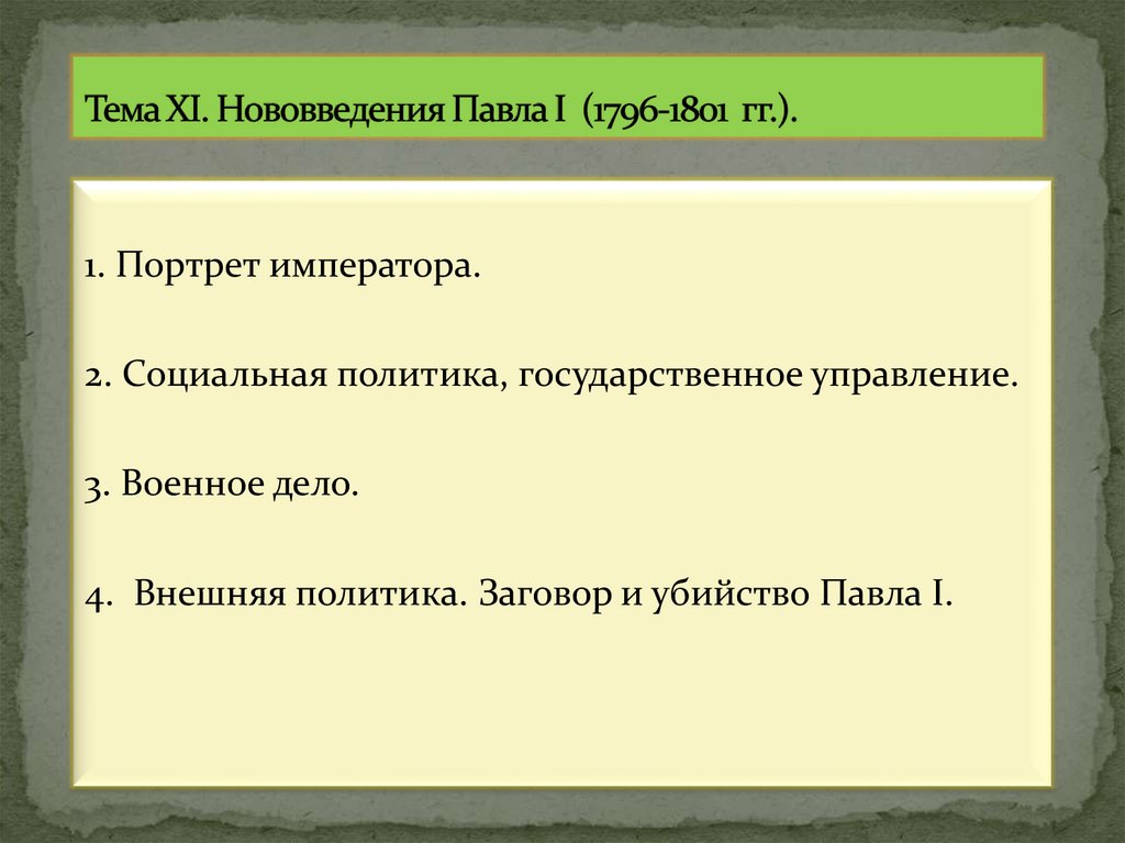 1. Тема XI. Нововведения Павла I (1796-1801 гг.).