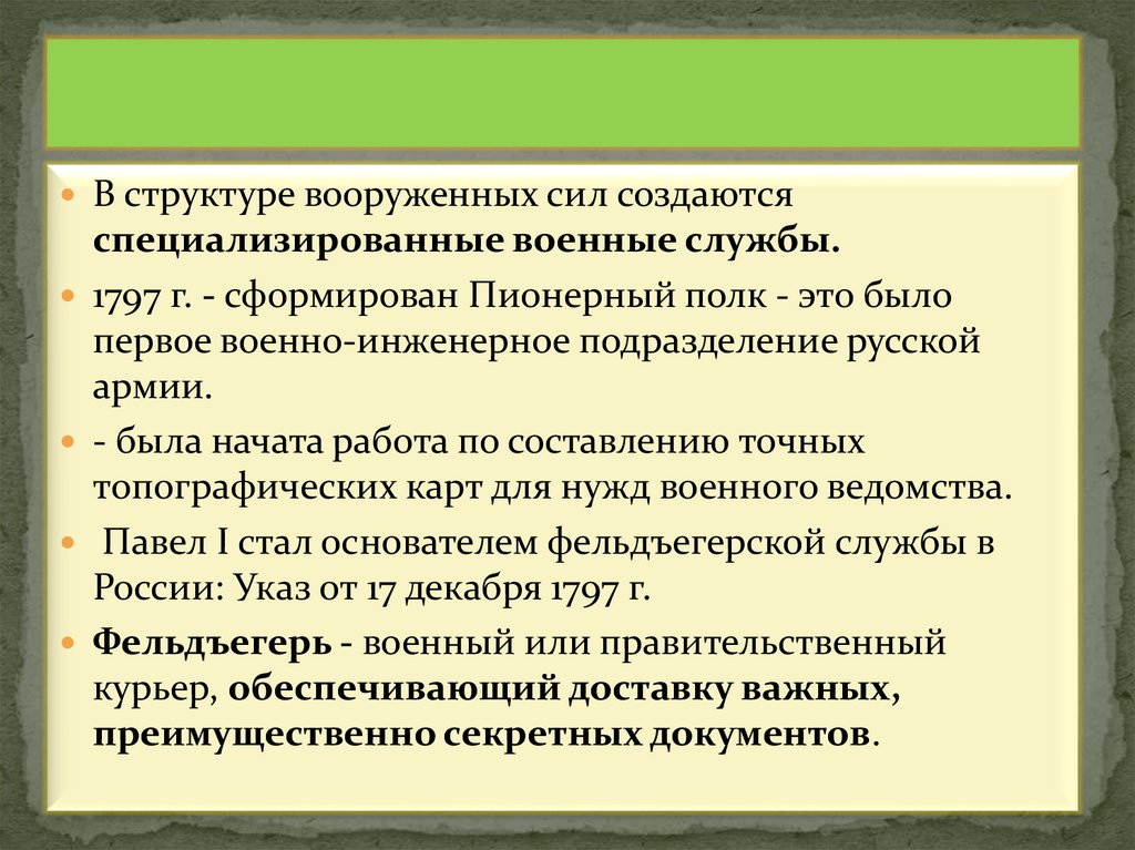 В структуре вооруженных сил создаютсяспециализированные военные службы.