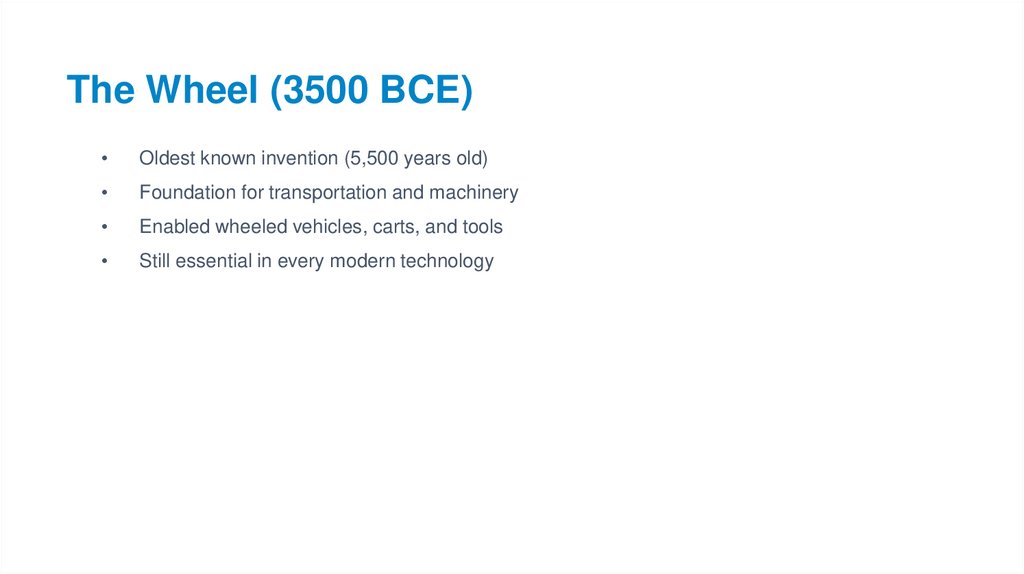 The Wheel (3500 BCE)Oldest known invention (5,500 years old)