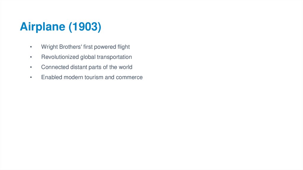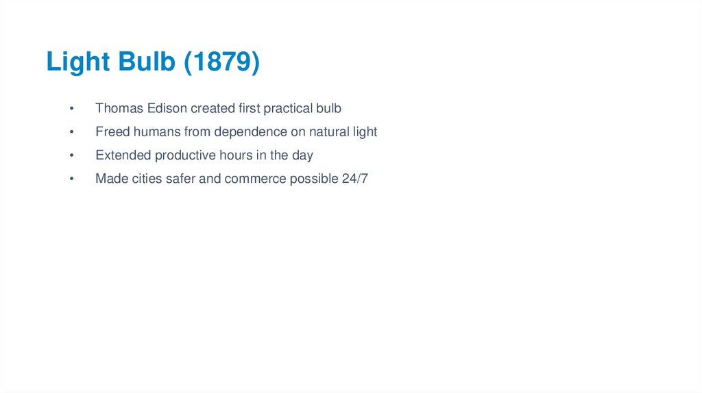 Light Bulb (1879)Thomas Edison created first practical bulb