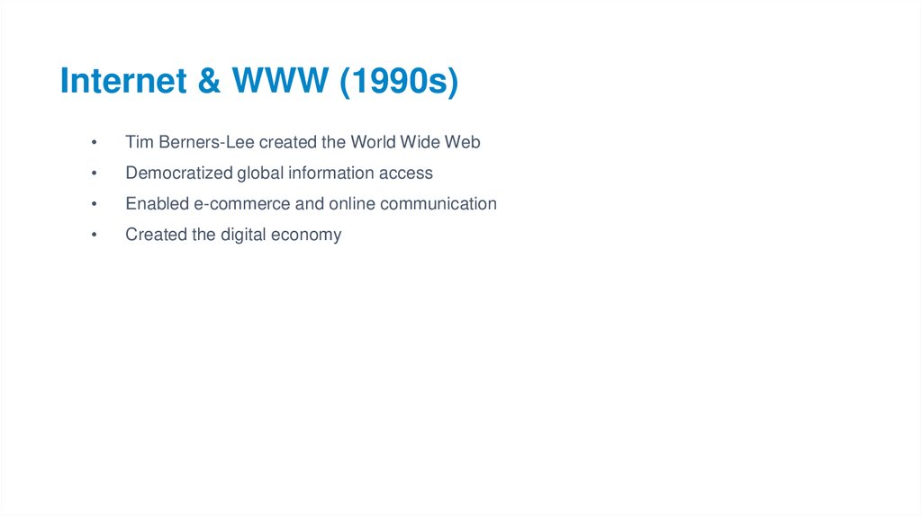 Internet & WWW (1990s)Tim Berners-Lee created the World Wide Web