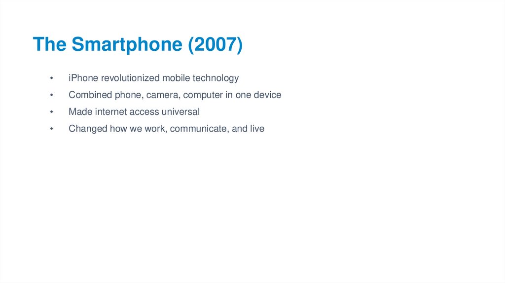 The Smartphone (2007)iPhone revolutionized mobile technology