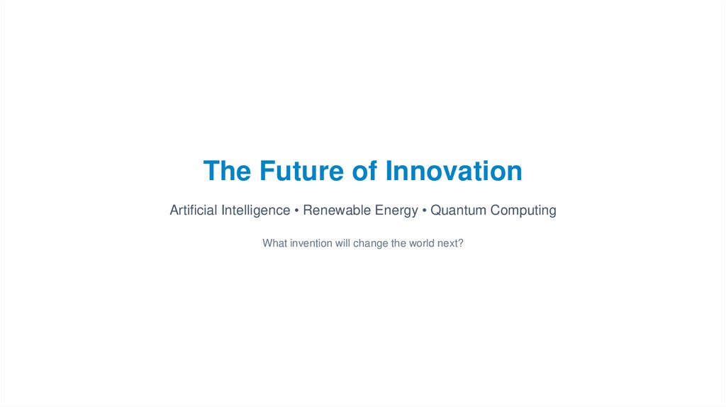 The Future of InnovationArtificial Intelligence • Renewable Energy • Quantum Computing