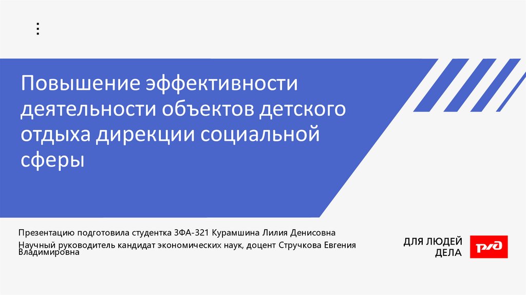 Повышение эффективности деятельности объектов детского отдыха дирекции социальной сферыЦелью магистерской работы является разработка и экономическое обоснование мероприятий по