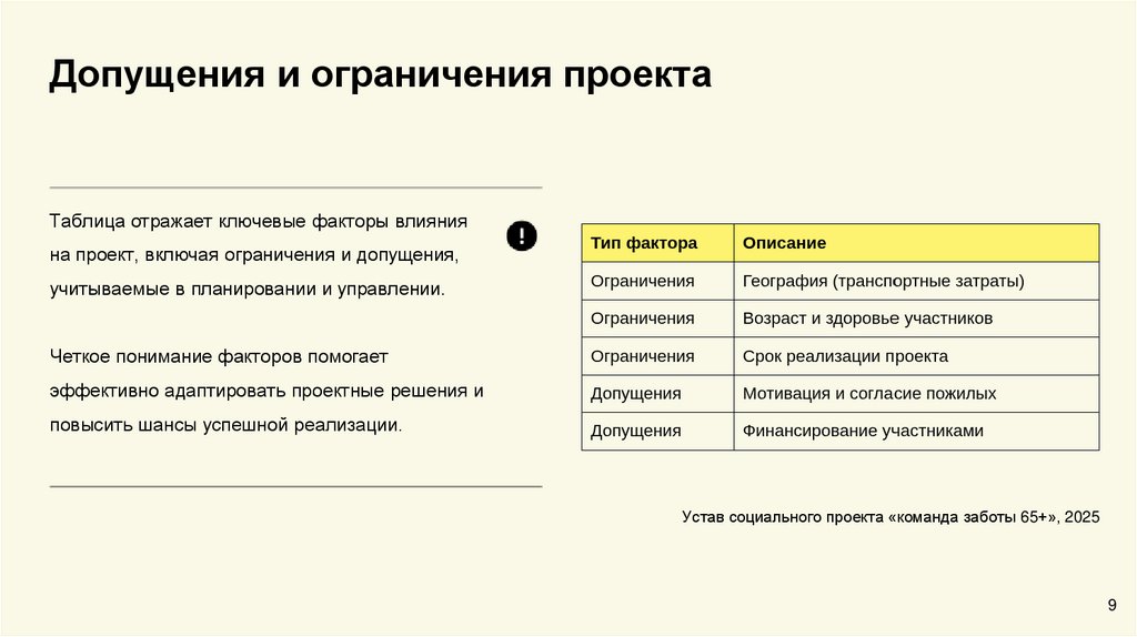 Допущения и ограничения проектаТаблица отражает ключевые факторы влияния