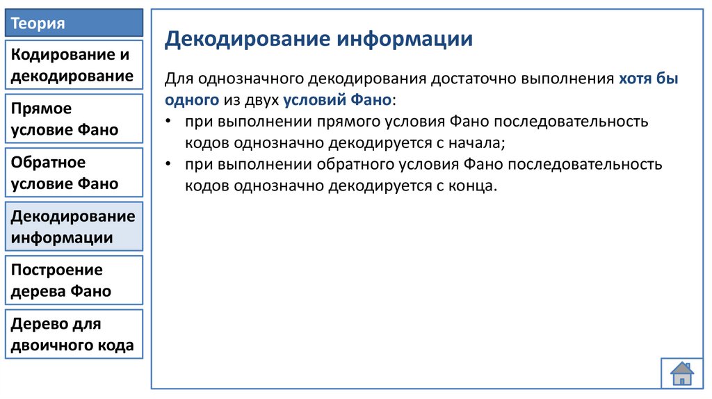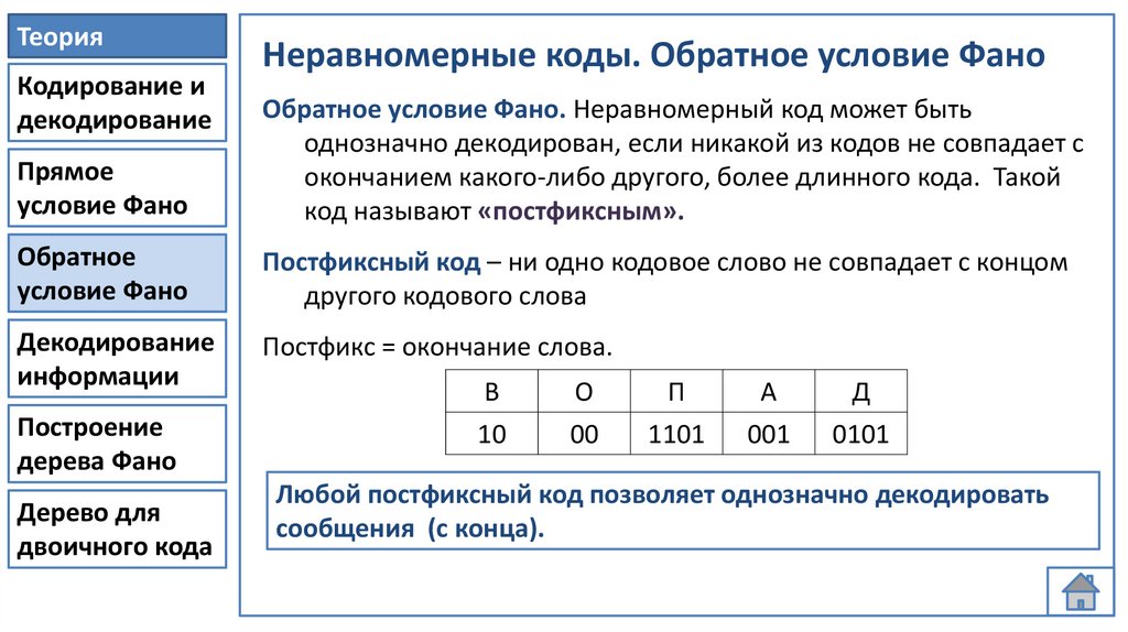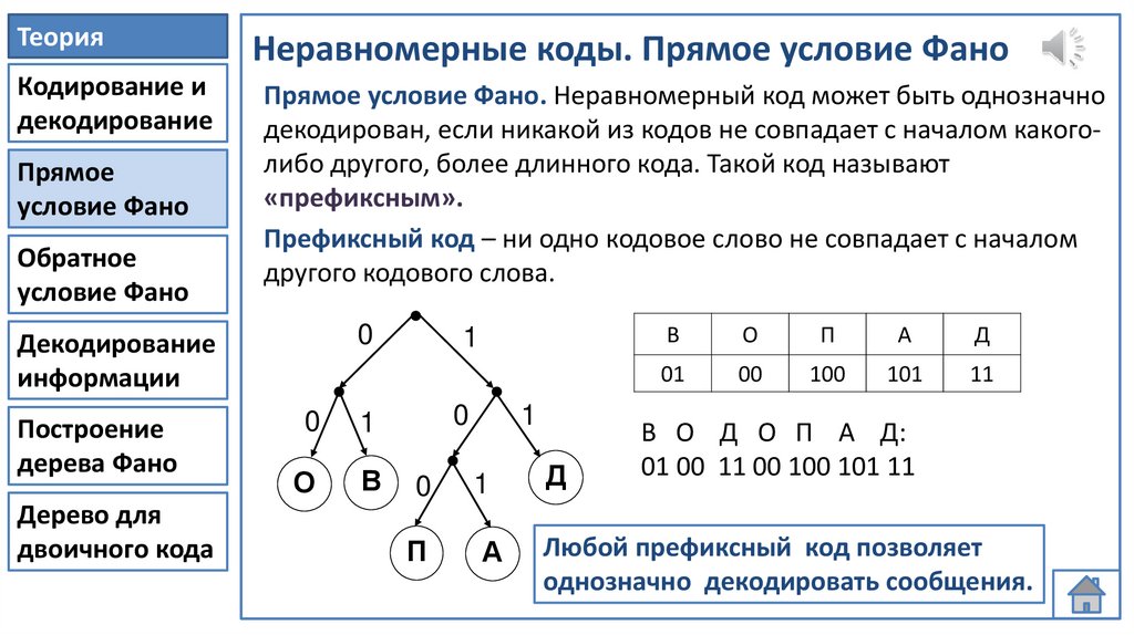 Прямое условие Фано. Неравномерный код может быть однозначно