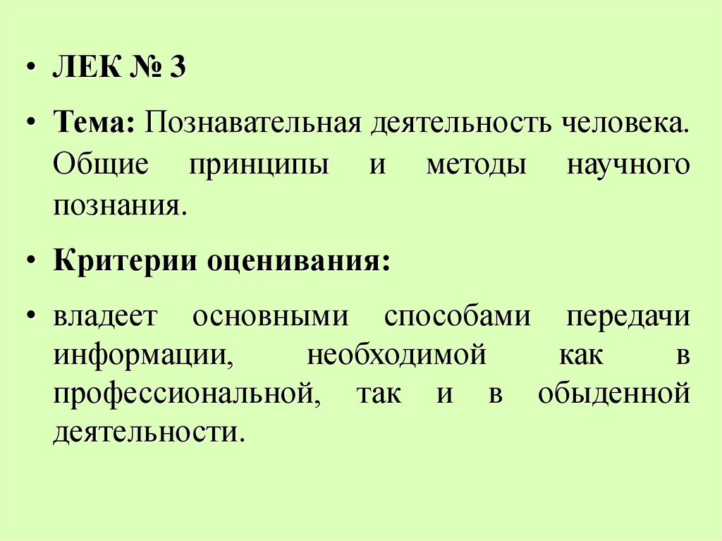 • ЛЕК № 3• Тема: Познавательная деятельность человека.