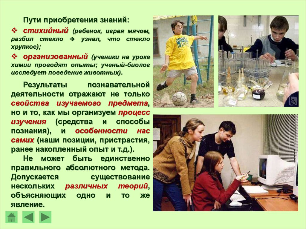 Пути приобретения знаний:стихийный (ребенок, играя мячом,