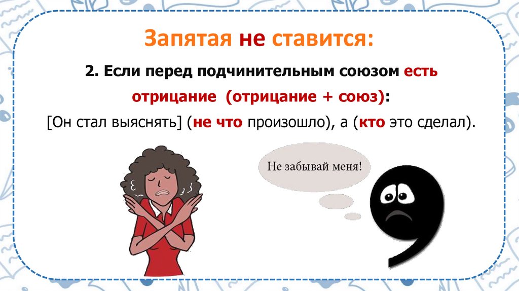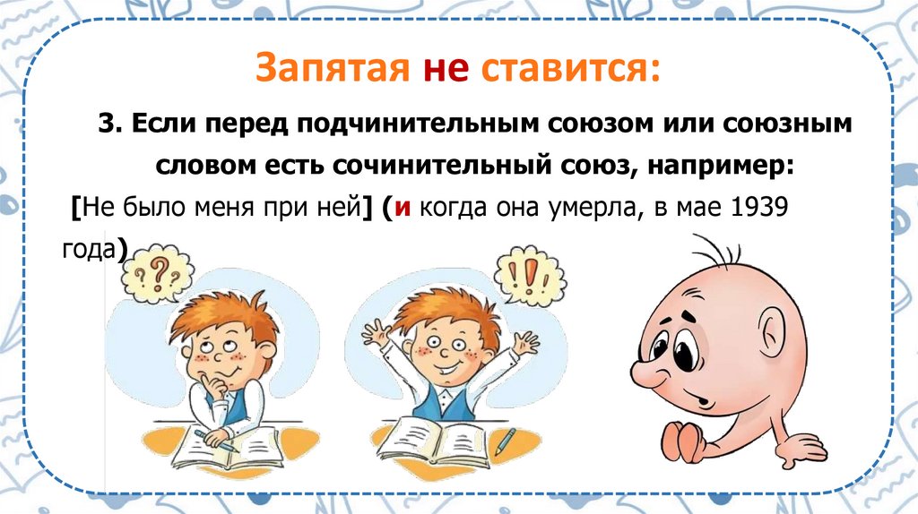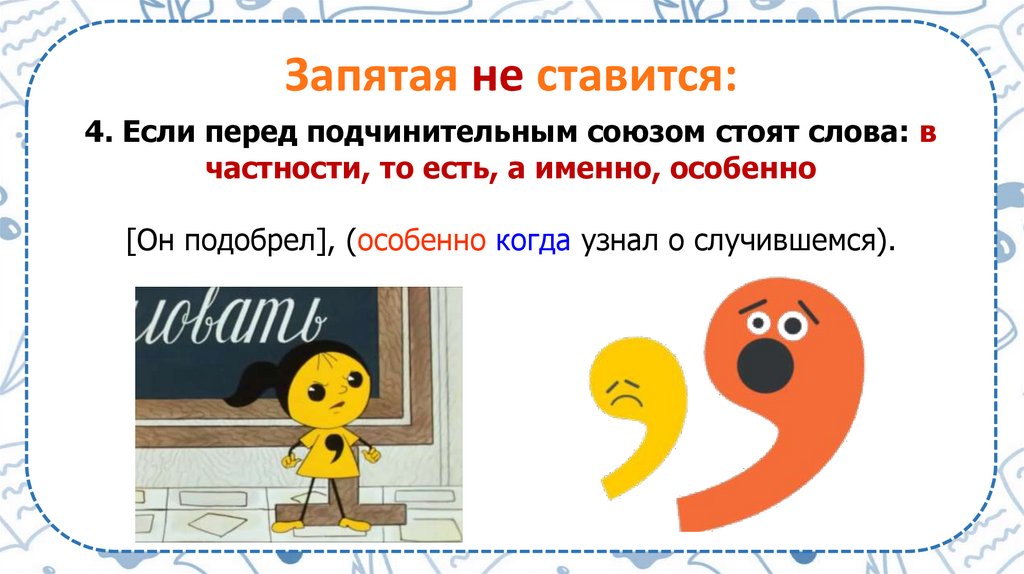 Запятая не ставится:4. Если перед подчинительным союзом стоят слова: в