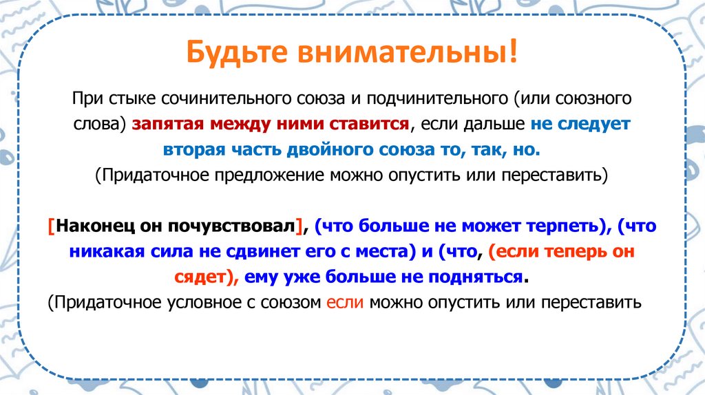Будьте внимательны!При стыке сочинительного союза и подчинительного (или союзного
