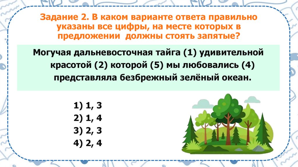 Задание 2. В каком варианте ответа правильноуказаны все цифры, на месте которых в