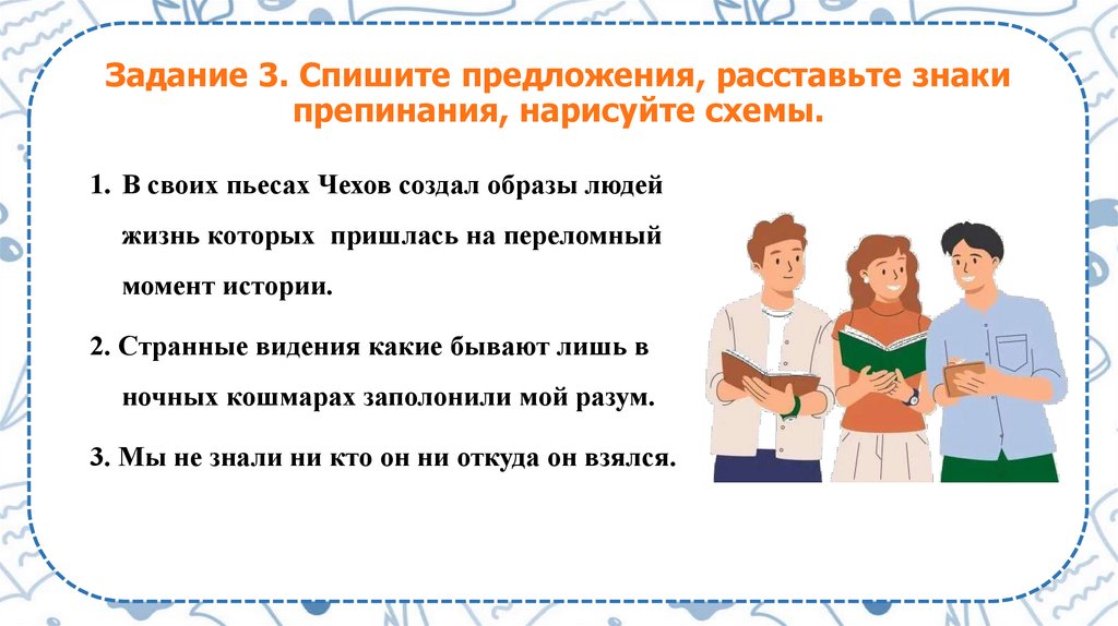 Задание 3. Спишите предложения, расставьте знакипрепинания, нарисуйте схемы.