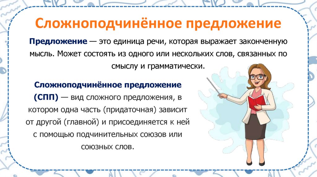 Сложноподчинённое предложениеПредложение — это единица речи, которая выражает законченную