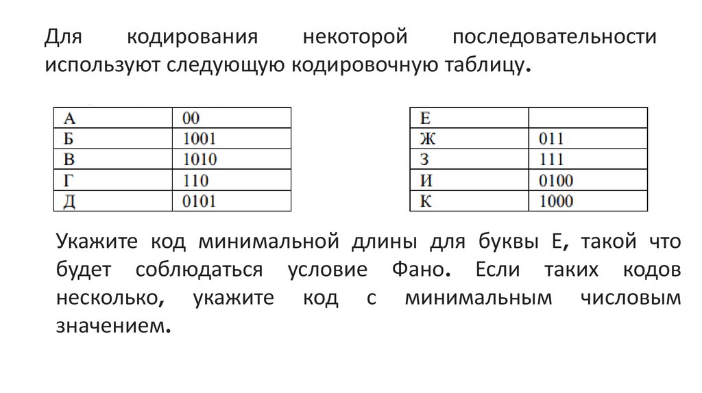 удовлетворять условию Фано. Если таких кодов несколько, укажите код с