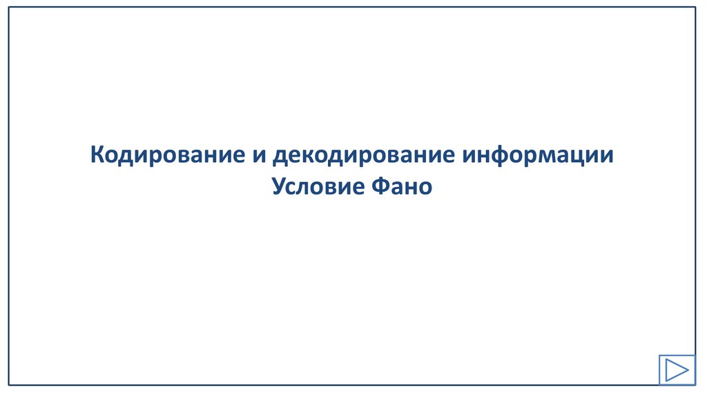 Ч. Для передачи используется двоичный код, удовлетворяющий прямому условию Фано. Кодовые