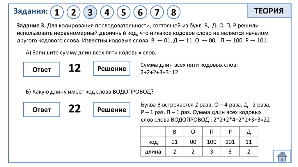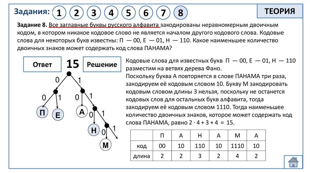 Задание 8. Все заглавные буквы русского алфавита закодированы неравномерным двоичным