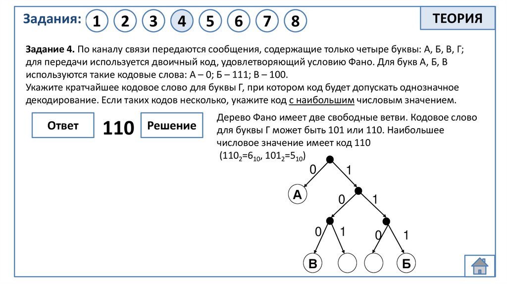 Задание 4. По каналу связи передаются сообщения, содержащие только четыре буквы: А, Б, В, Г;