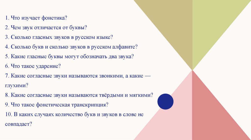 1. Что изучает фонетика?2. Чем звук отличается от буквы?