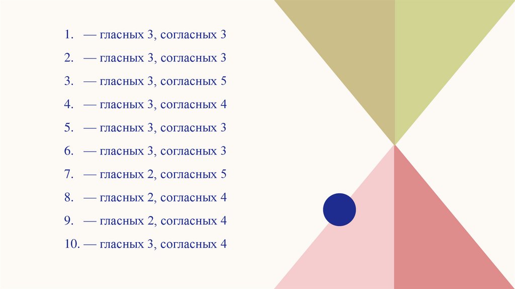 10. — гласных 3, согласных 4