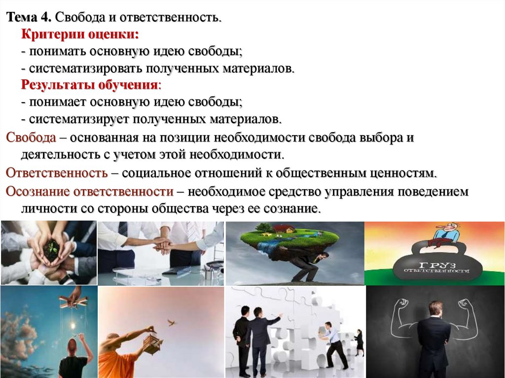 Тема 4. Свобода и ответственность.Критерии оценки: