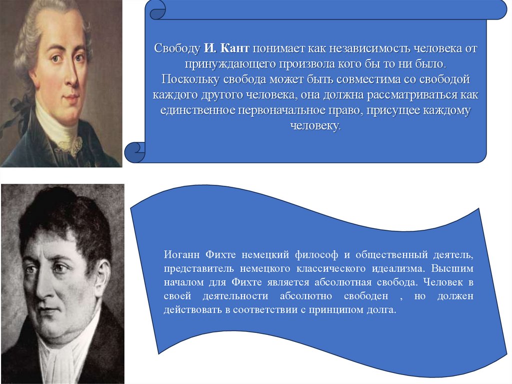 Свободу И. Кант понимает как независимость человека отпринуждающего произвола кого бы то ни было.