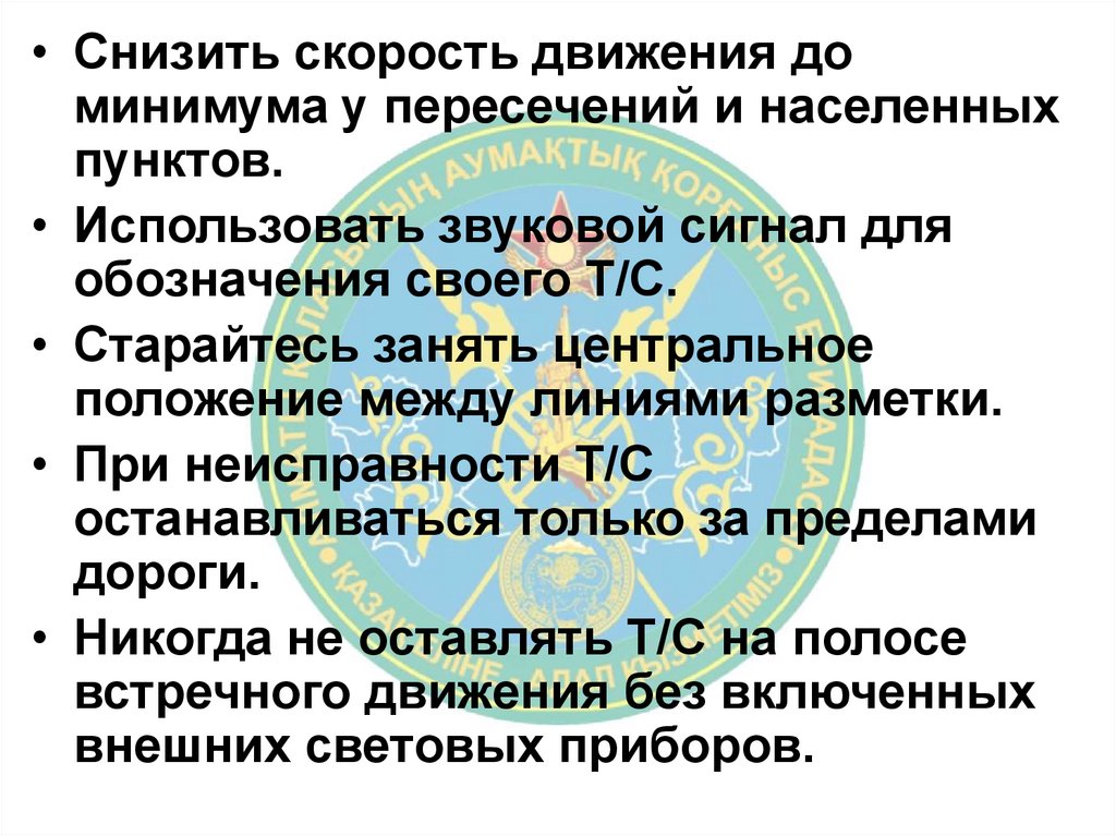 • Никогда не оставлять Т/С на полосе
