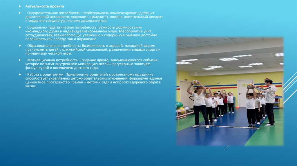Актуальность проекта· Оздоровительная потребность: Необходимость компенсировать дефицит