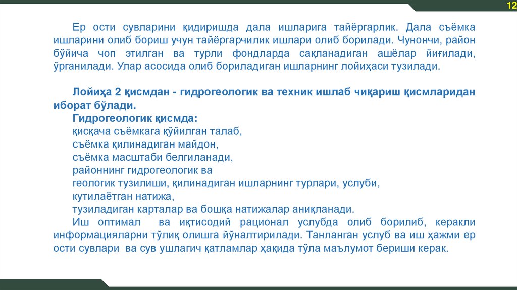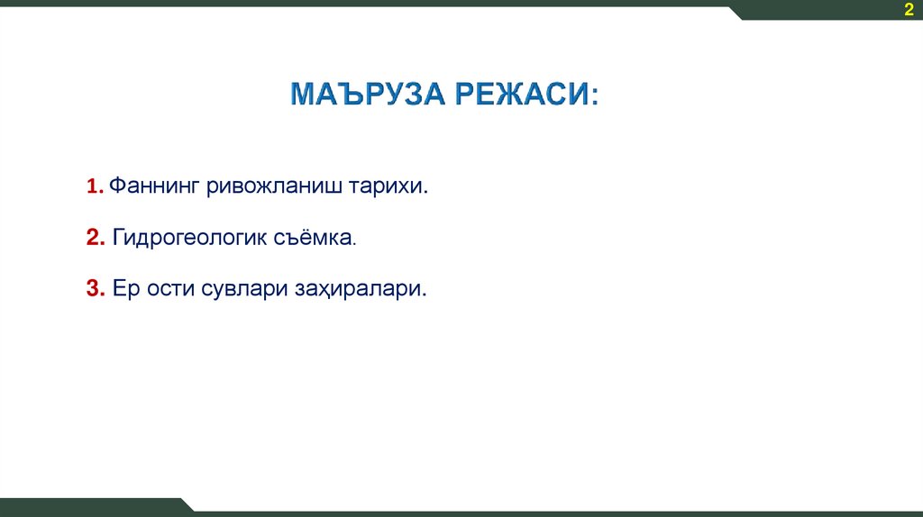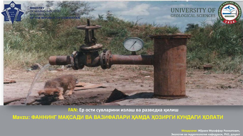 FAN: Ер ости сувларини излаш ва разведка қилишMavzu: ФАННИНГ МАҚСАДИ ВА ВАЗИФАЛАРИ ҲАМДА ҲОЗИРГИ КУНДАГИ ҲОЛАТИ