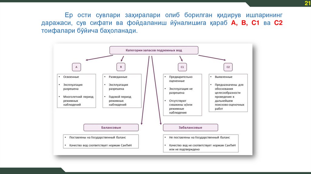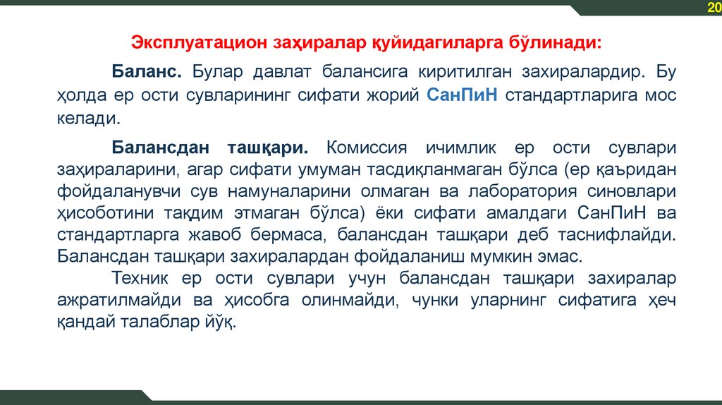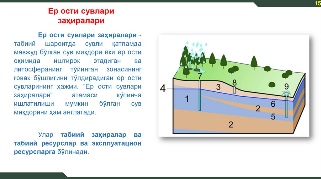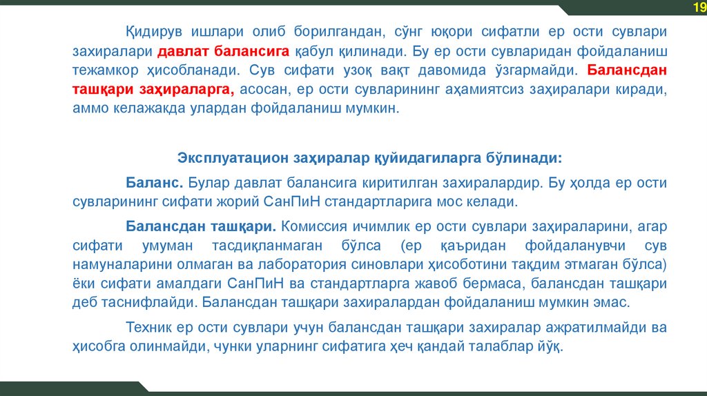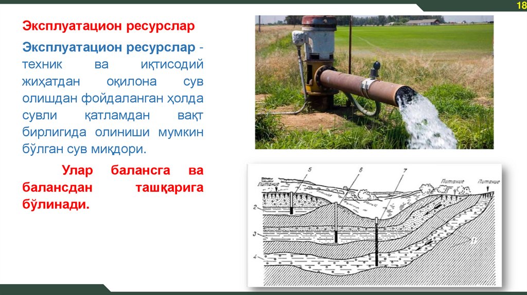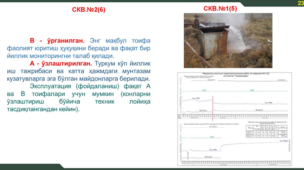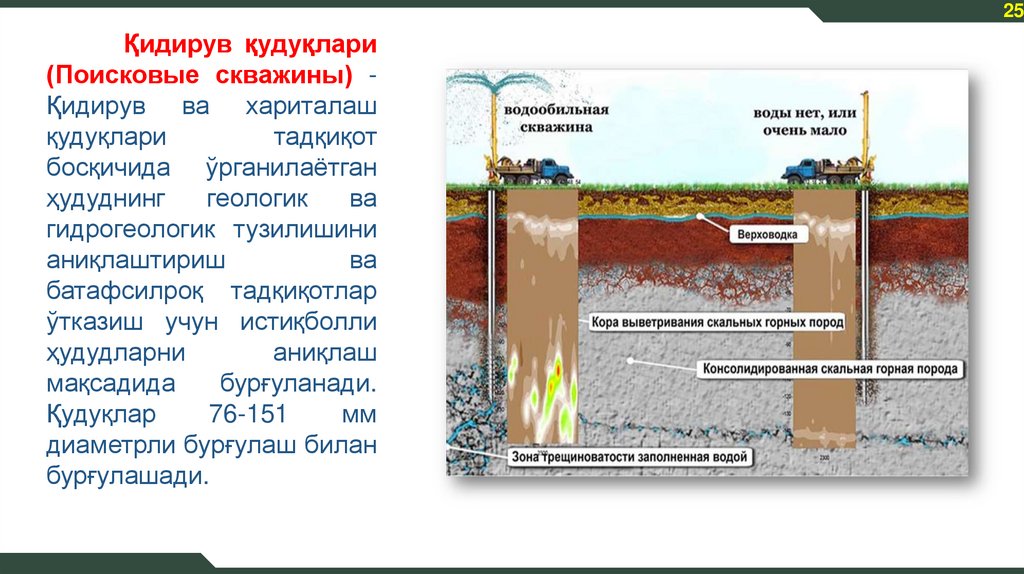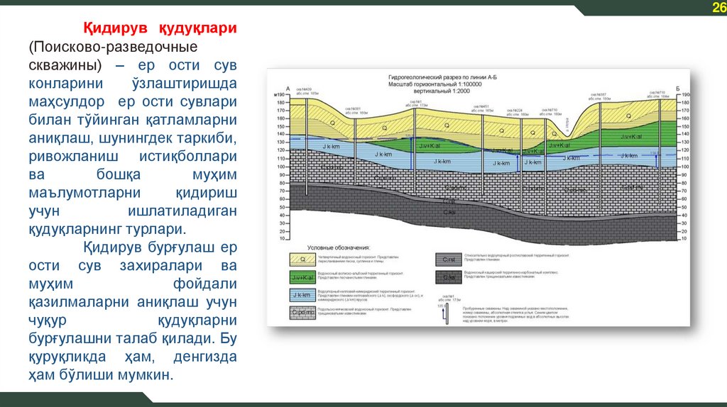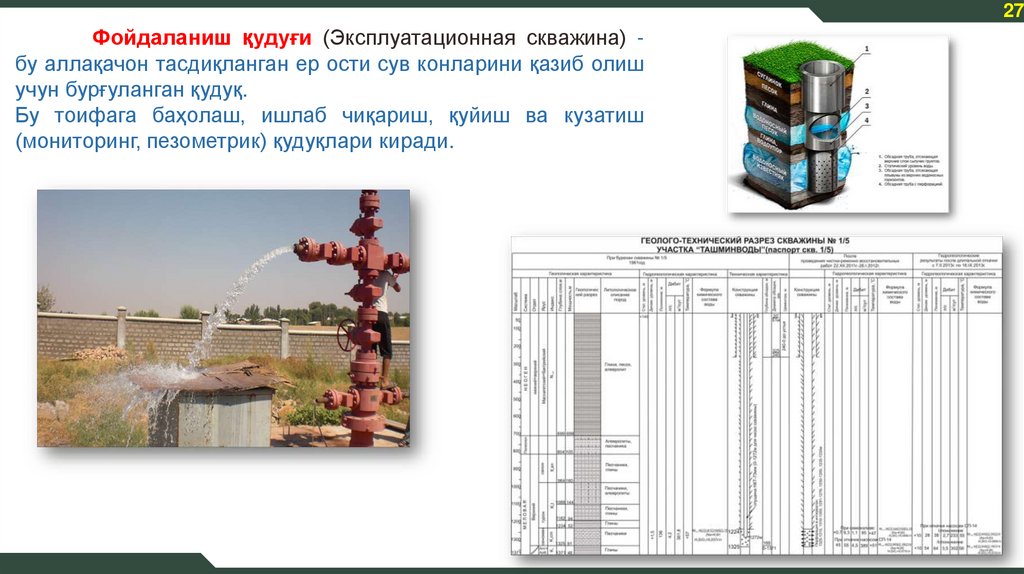 27Фойдаланиш қудуғи (Эксплуатационная скважина) бу аллақачон тасдиқланган ер ости сув конларини қазиб олиш