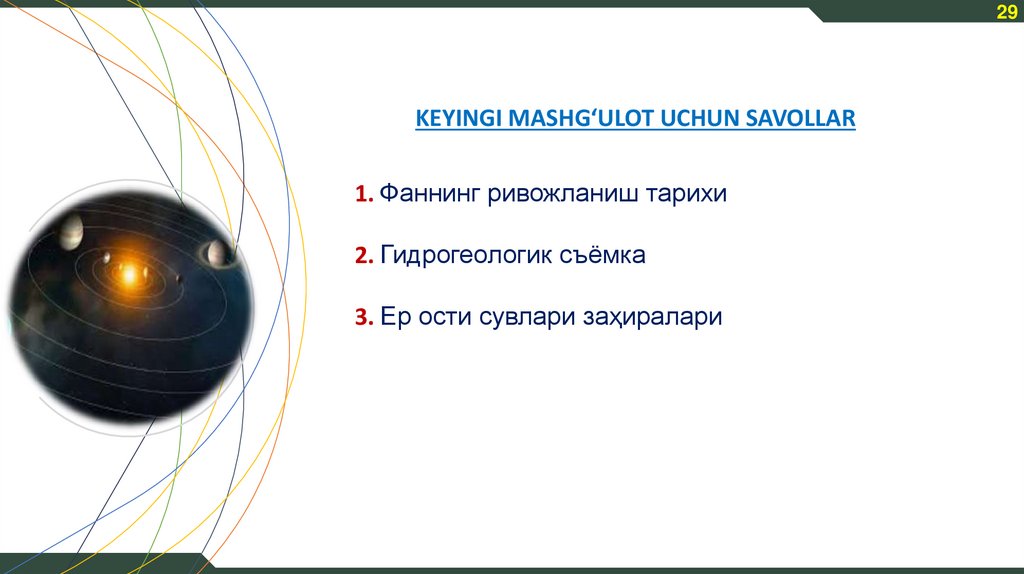 29KEYINGI MASHG‘ULOT UCHUN SAVOLLAR