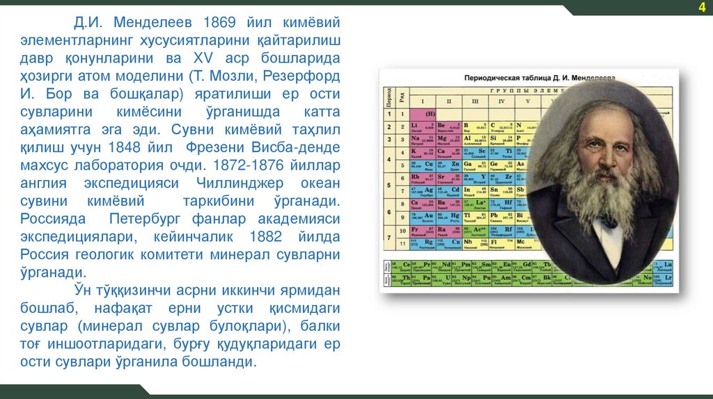 Д.И. Менделеев 1869 йил кимёвийэлементларнинг хусусиятларини қайтарилиш