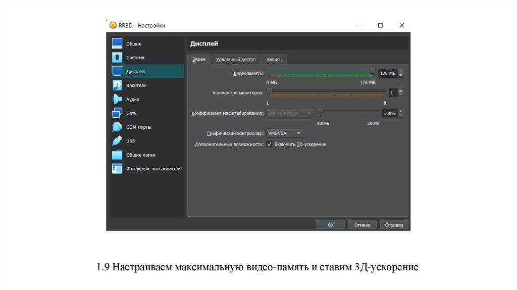 1.9 Настраиваем максимальную видео-память и ставим 3Д-ускорение