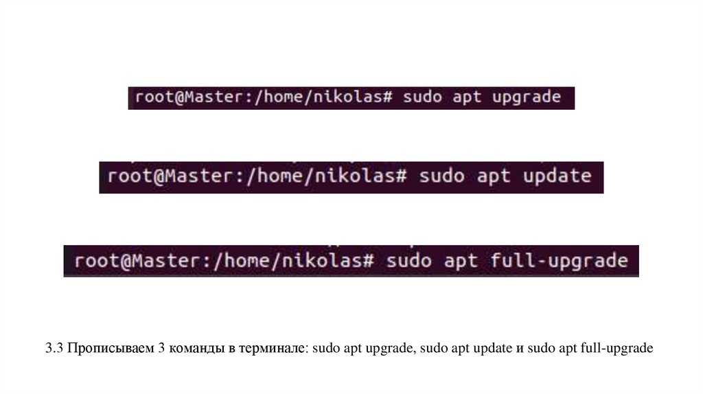 3.3 Прописываем 3 команды в терминале: sudo apt upgrade, sudo apt update и sudo apt full-upgrade