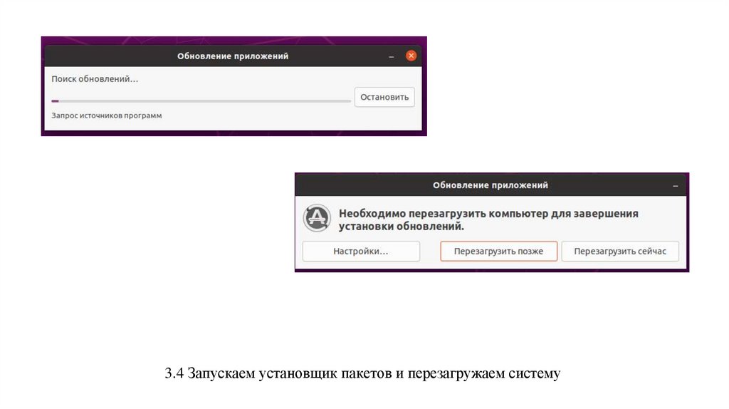 3.4 Запускаем установщик пакетов и перезагружаем систему