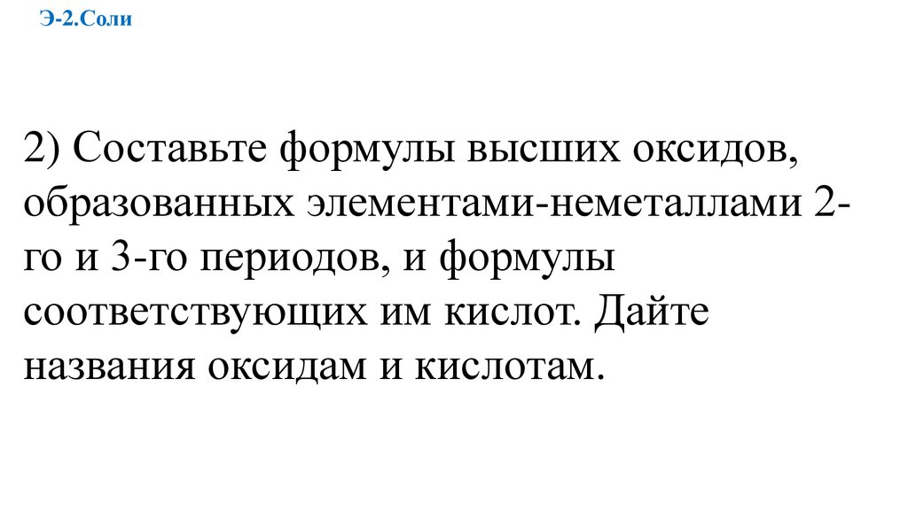 Э-2.Соли2) Составьте формулы высших оксидов,