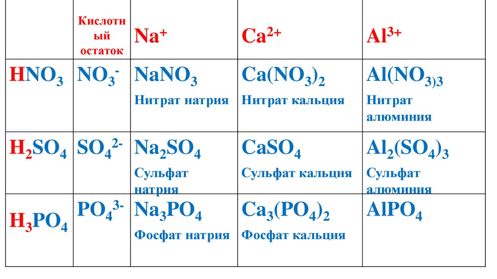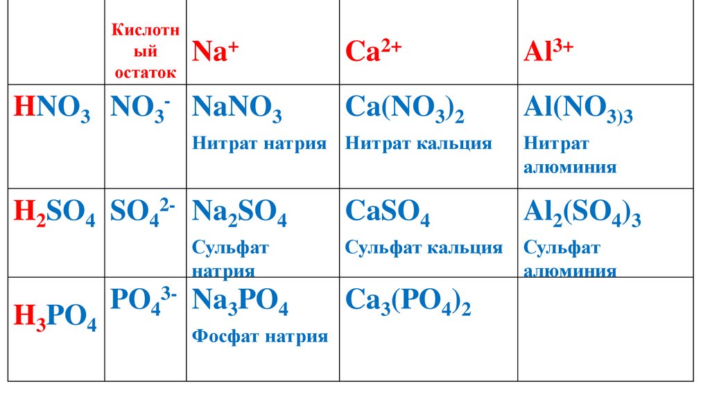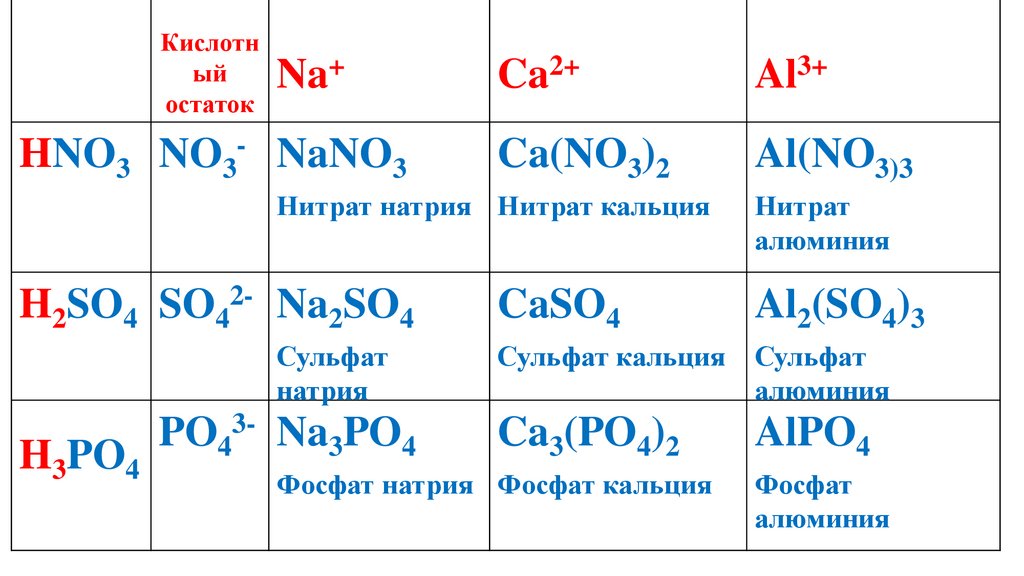 составлять формулы и названия солей; описывать свойства