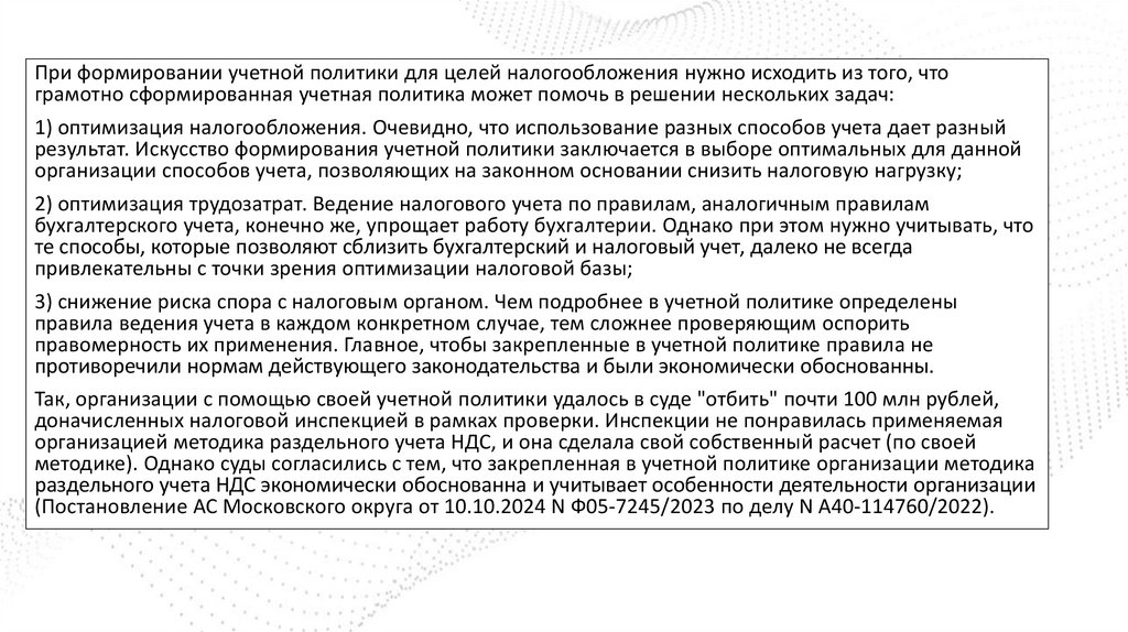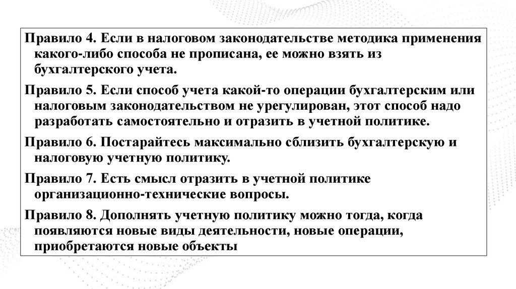 Учетная политика для целей налогового учета – выбранная налогоплательщиком совокупность