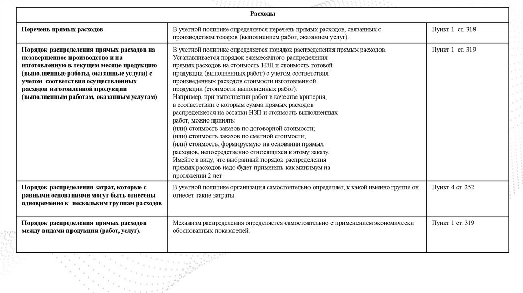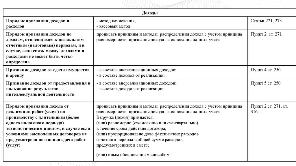- определения доходов и (или) расходов, их признания, оценки и распределения;