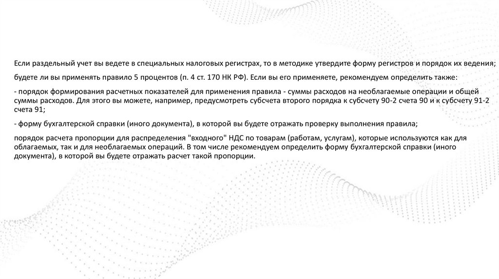 - учета иных необходимых для целей налогообложения показателей финансово-хозяйственной