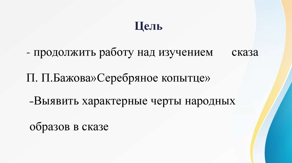 ТЕМА: «Народные образыгероев сказа П. П. Бажова