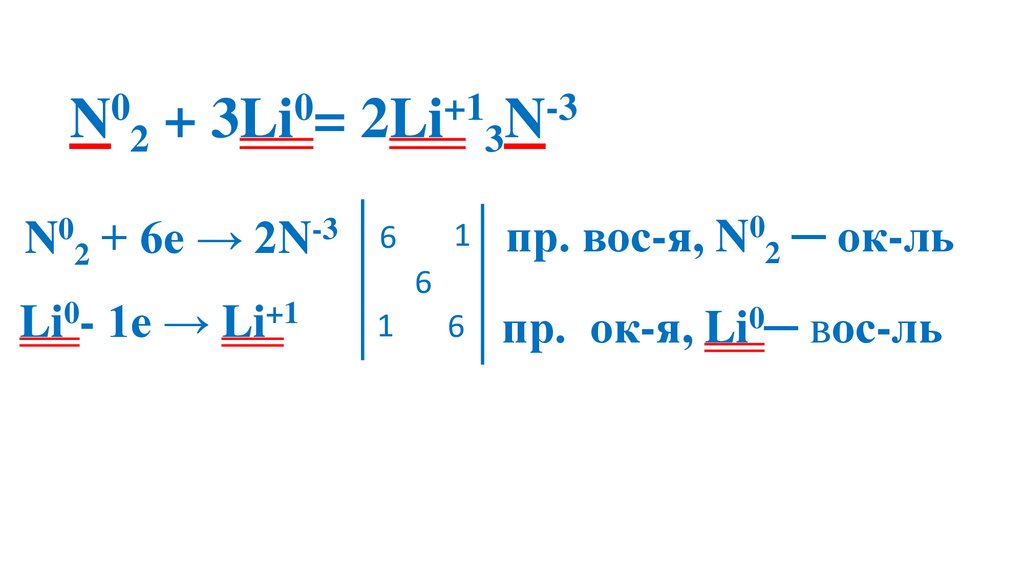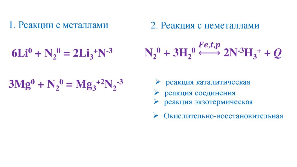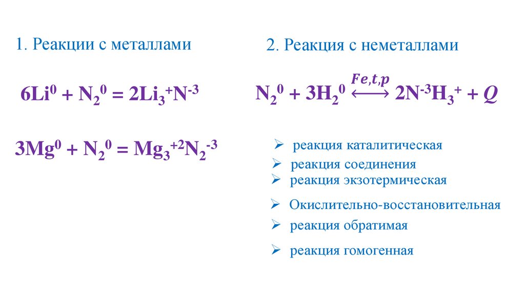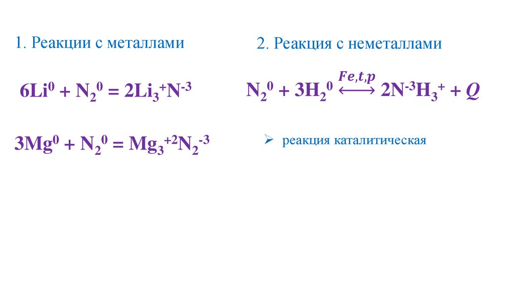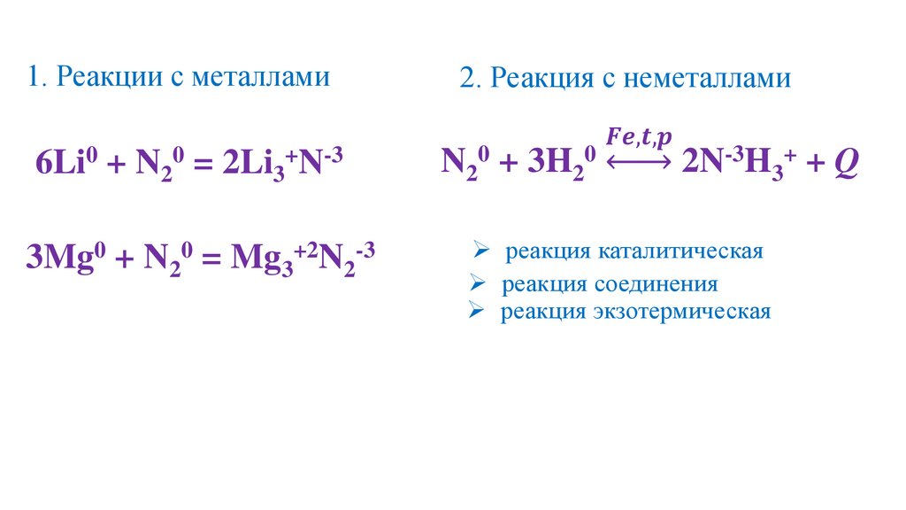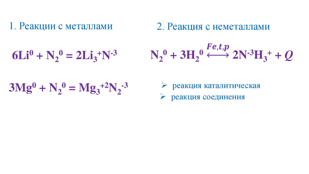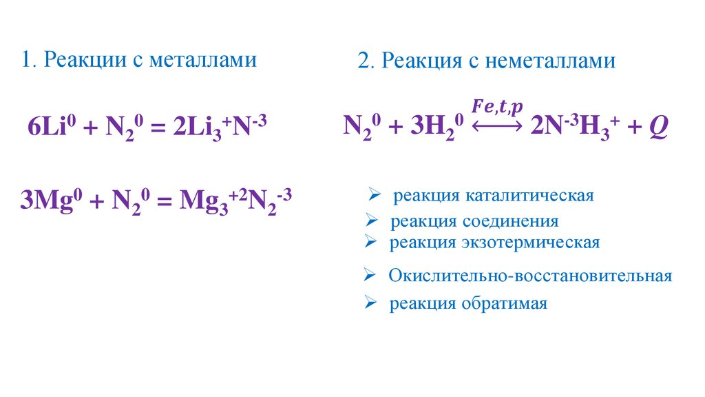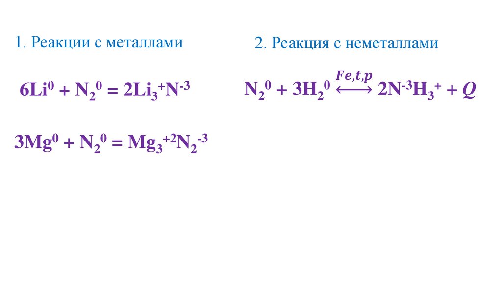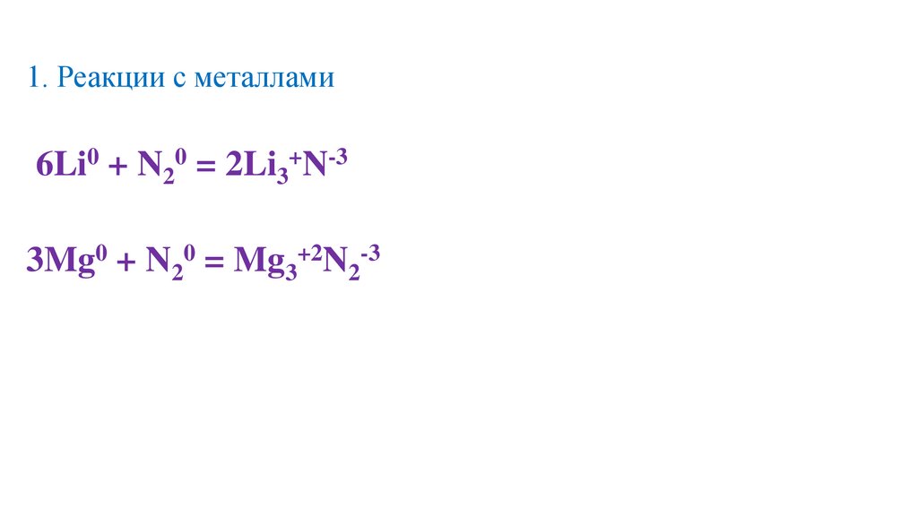 1. Реакции с металлами6Li0 + N20 = 2Li3+N-3