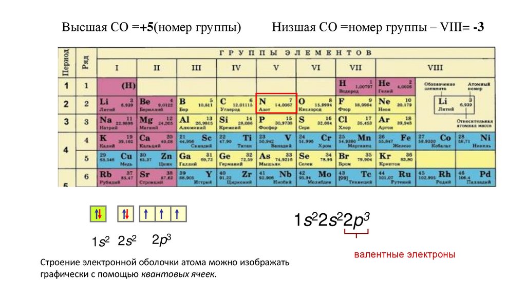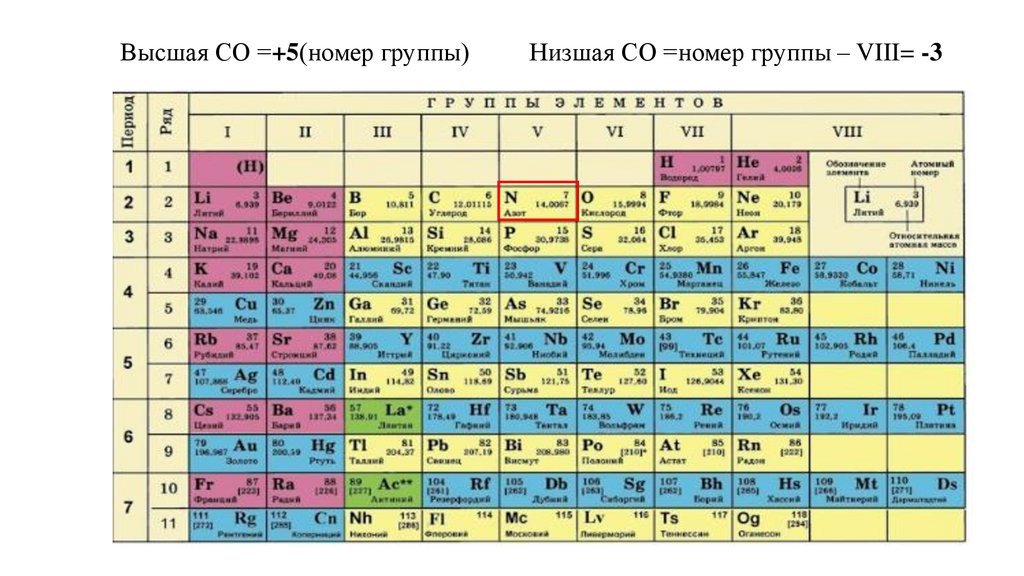 Высшая СО =+5(номер группы)Низшая СО =номер группы – VIII= -3